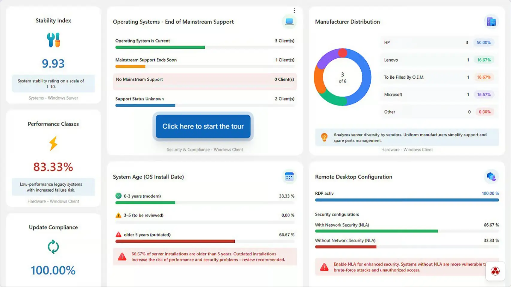 Thanks to over 200 integrated standard reports and evaluations, you can quickly find answers to all your IT-related questions.